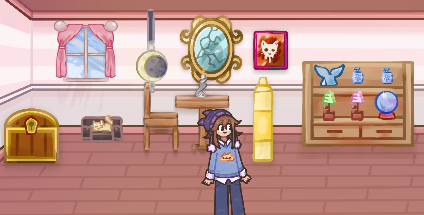 a cute silly game about decorating your room with a cat that is a menace to society, made for bad ideas game jam 2026!